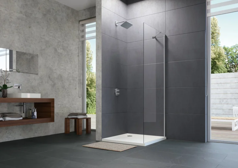 Fastfelt til Pure serien som kan kombineres med dør for hjørneløsning eller stå alene.